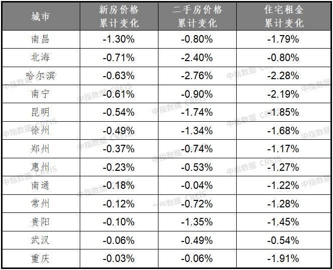 表:2022年上半年新房、二手房价格及住宅租金累计均下跌城市汇总