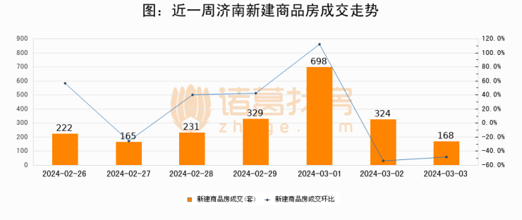 【济南成交日报】03月03日新房成交168套;涨价房源38套