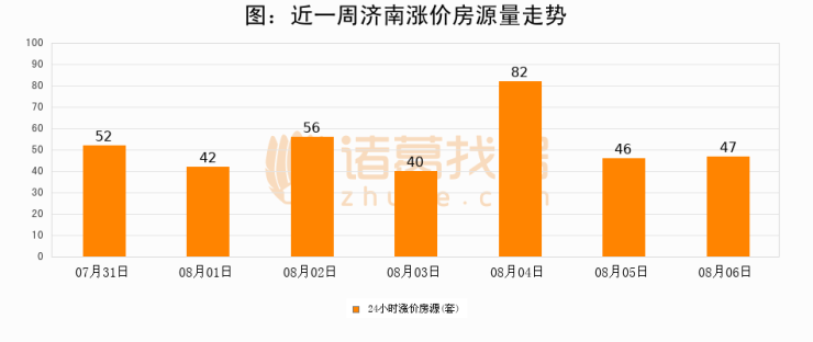 根据诸葛找房数据显示,济南24小时涨价房源量为47套,较08月05日增加1套,环比上涨2.2%。与此同时,涨价房源占比小幅扩大,业主信心有所提升。