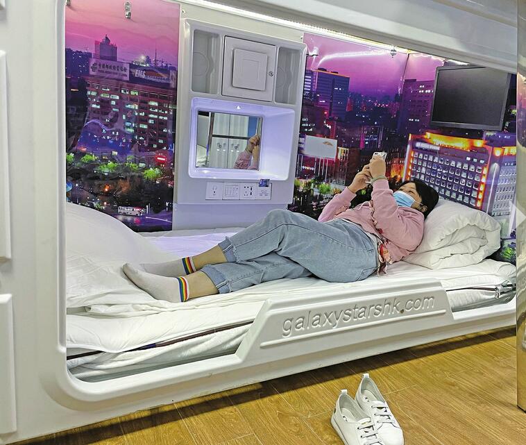 “这种设计比较新颖,我也是排名前列次住这样业态的旅社,住一晚上还是很方便的,非常适合我们年轻人。”入住旅客蔡先生说。“虽然隔音效果不太好,但是比起在办公室里趴着睡,这里舒服多了。”在西客站附近工作的刘女士说。