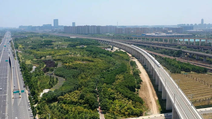 济郑高铁济濮段横跨黄河、京杭大运河等多条河流,跨越京沪高铁、京沪铁路、京九铁路等多条既有铁路干线,施工难度较大。该项目2020年6月开工建设以来,国铁集团组织各参建单位和广大建设者科学有序推进工程建设,建成了长清黄河特大桥等一批长大桥梁,确保了工程如期开通。