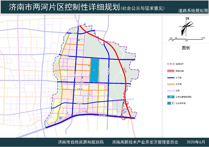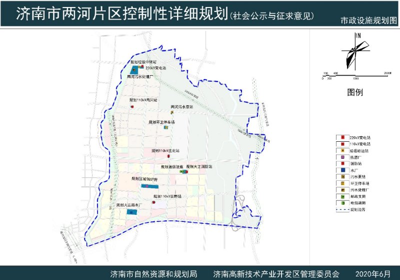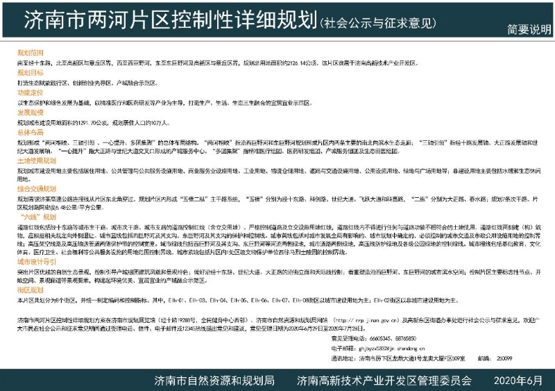 6月29日,济南市自然资源和规划局发布济南市两河片区控制性详细规划,范围南至经十东路,北至高新区与章丘区界,西至西巨野河,东至东巨野河及高新区与章丘区界,规划总用地面积约2126. 14公顷。规划城市建设用地面积约1291.70公顷,规划居住人口约10万人。该片区隶属于济南高新技术产业开发区。