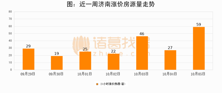 根据诸葛找房数据显示,济南24小时涨价房源量为59套,较10月04日增加32套,环比上涨118.5%。与此同时,涨价房源占比小幅扩大,业主信心有所提升。