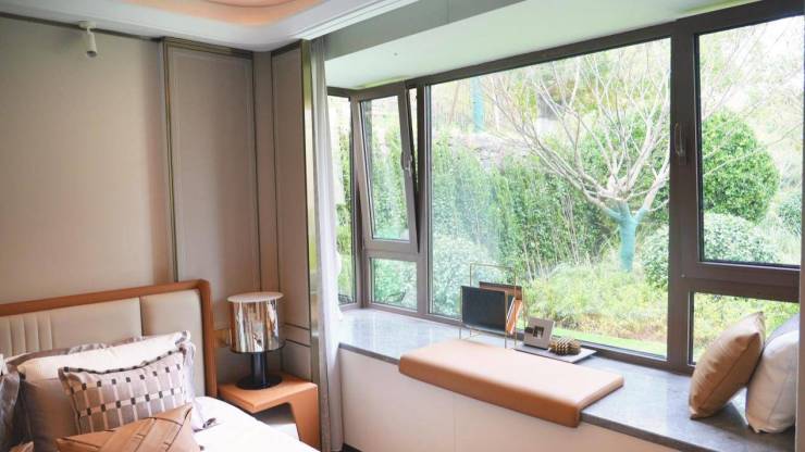 约10米三开间朝南,确保了居室阳光充足,视野开阔;科学三室,套房式主卧,配置独立卫浴,奢享私密;南向双卧均设观景飘窗,悦享窗外自然风景。
