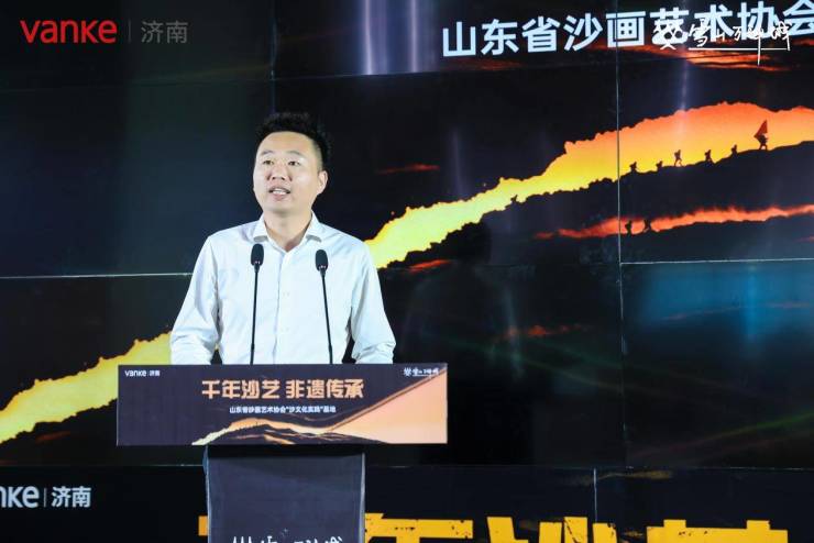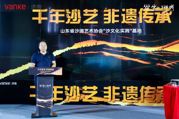 张茂利在致辞中表达了对“沙文化实践”基地落地雪山万科城的祝贺和对与会领导、嘉宾的欢迎,简要介绍了沙画协会有关情况后表示,沙画是非物质文化遗产,符合国家对非遗的保护政策,同时也契合新课改后寓教于乐、五育并举的理念。济南市沙画协会是国内首个正规组织的沙画协会,在山东省沙画艺术协会的帮助下,山西、河北、安徽、北京等地落地了沙画协会,山东省沙画艺术协会专业水平是发展进程在国内属于领航地位,是中国沙画界的“风向标”与各类学校和有社会责任感、声誉好、实力强的企业开展合作共同推广“沙文化”非物质文化遗产的保护,让传统文化在年轻一代心中生根、发芽;为中华优秀传统文化的挖掘、传承与弘扬发展作出应有贡献。