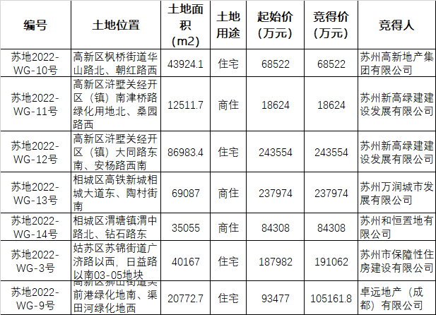 苏州首批集中供地首日:7宗地94亿元成交,苏州国企获6宗