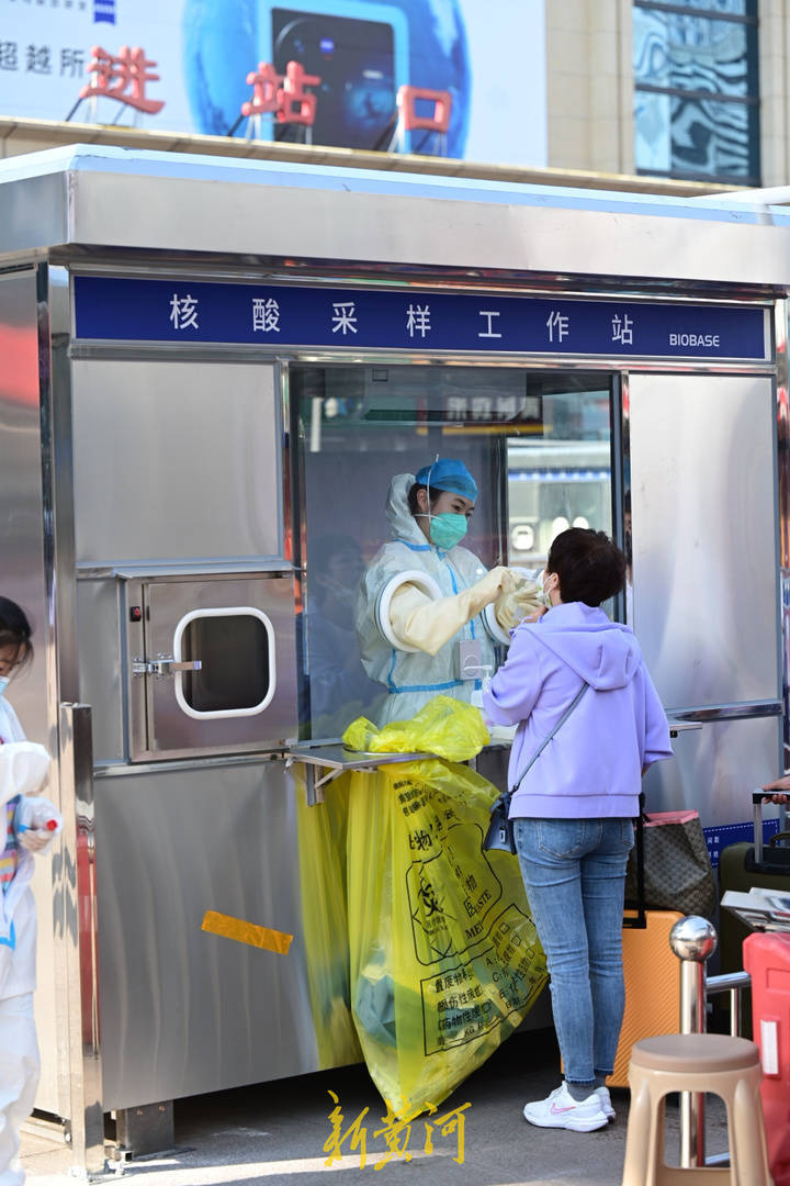 济南站前广场增核酸采样岗亭 到站乘客先采样后出站