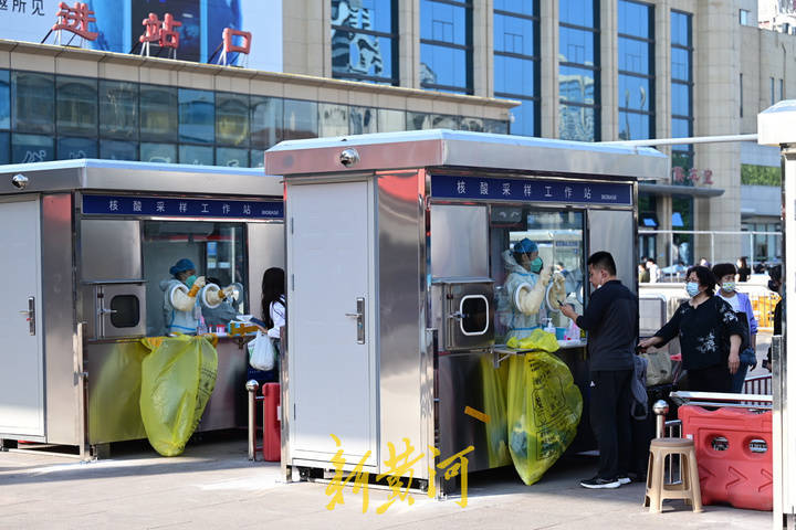 5月28日,在济南火车站站前广场,安装在出站口附近的17座独立封闭式核酸采样岗亭开始启用。