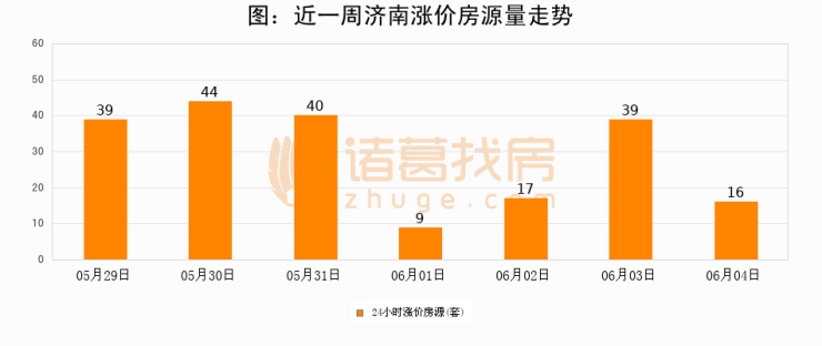 根据诸葛找房数据显示,济南24小时涨价房源量为16套,较06月03日减少23套,环比下降59%。与此同时,涨价房源占比小幅回落,对于购房者来说是一个入市窗口期,购房者可抓住时机入市。