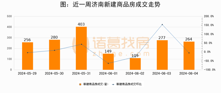 【济南成交日报】06月04日新房成交264套;涨价房源16套