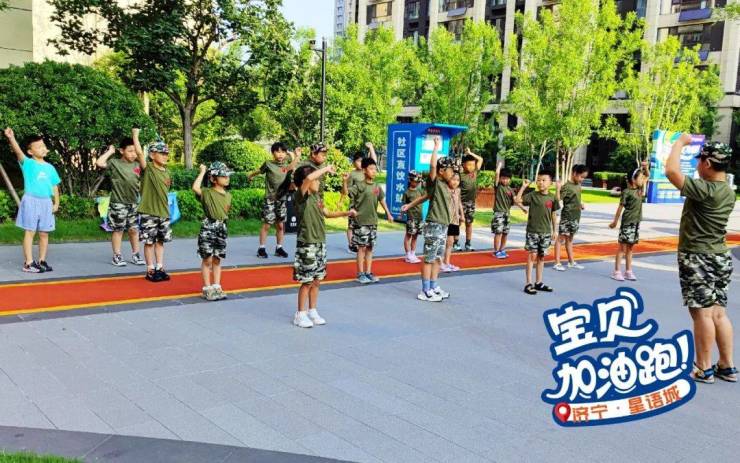 晨跑结束打卡,活动还未停止。8月1日-8月19日期间,“宝贝加油跑”第二阶段活动热情上线,永升银盛泰精心策划了青少年体适能提升的军训课程和劳动实践体验课程。每天上午,永升银盛泰山东区域在管的11个小区组织11名退伍军人发起军训课程,参与的小业主们坚持参与训练,立正、稍息、左转……退伍军人化身“严肃教官”,带孩子体验军训之旅。促进小业主们增强体质、健全人格、锻炼意志。