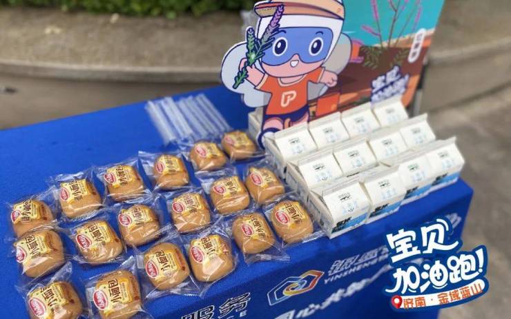 为保障参与活动的小业主全程安全,物业员工们提前在跑步路线上踩点,在起点、园区各个拐点处设立温馨提示,保持跑团队伍的行进速度与间距,在车库出入口设置专人现场指引,警示机动车与非机动车及时避让跑团队伍,终点处设有能量补给点,面包、鸡蛋、矿泉水一应俱全,补充小朋友们在运动过程中消耗的能量。
