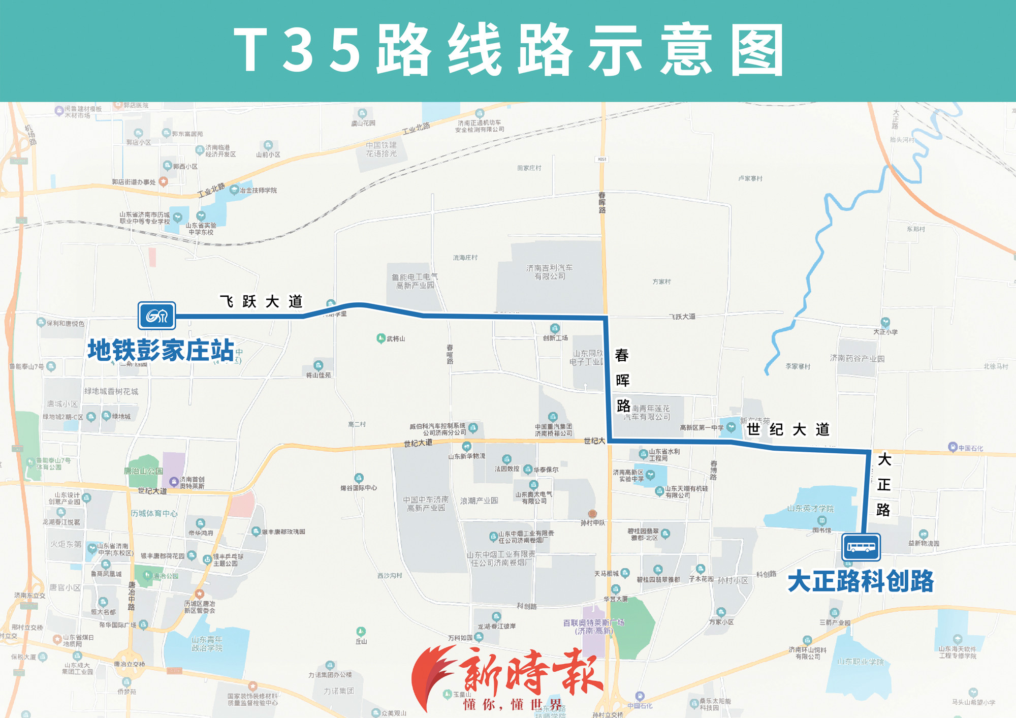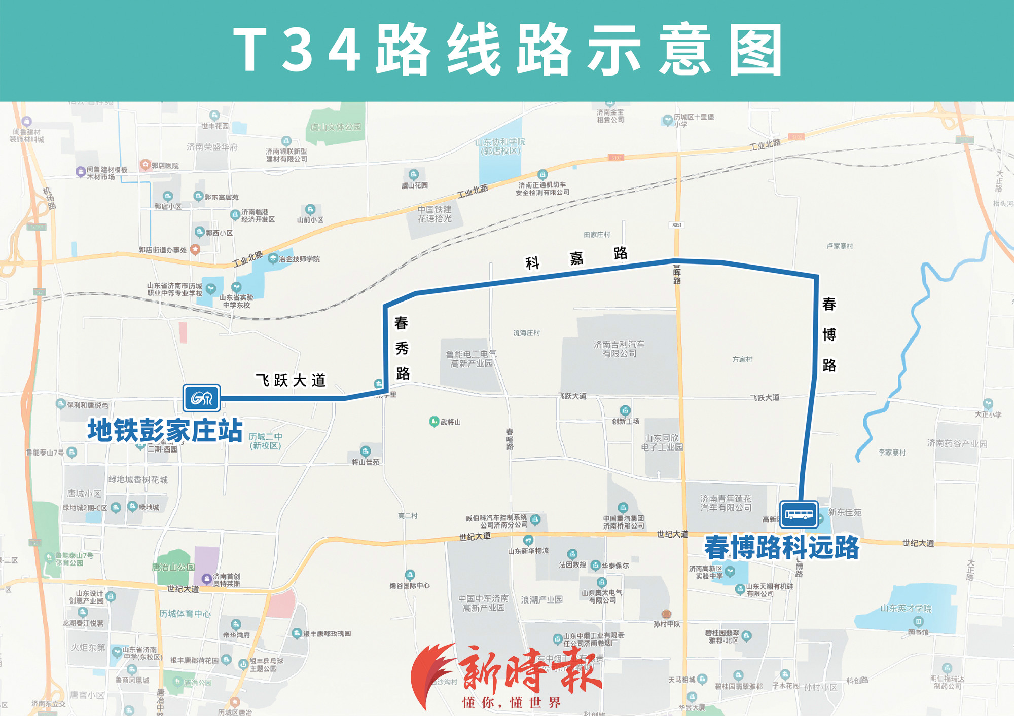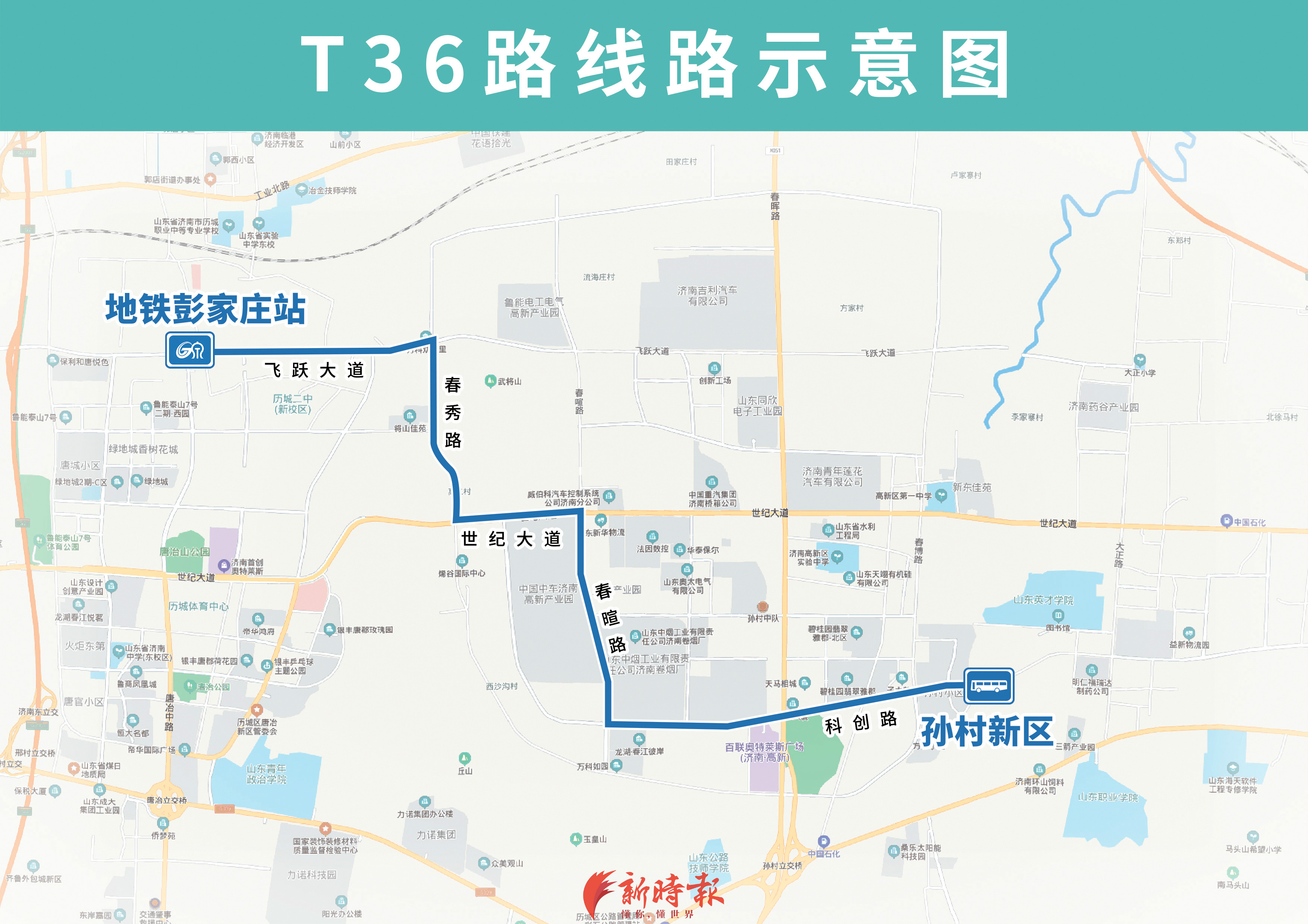 新开通3条通勤线路T34、T35、T36路,分别由地铁彭家庄站开往春博路科远路、大正路科创路、孙村新区,主要途经科嘉路、飞跃大道、世纪大道、大正路等路段,方便沿线小区居民及企业职工通勤出行。