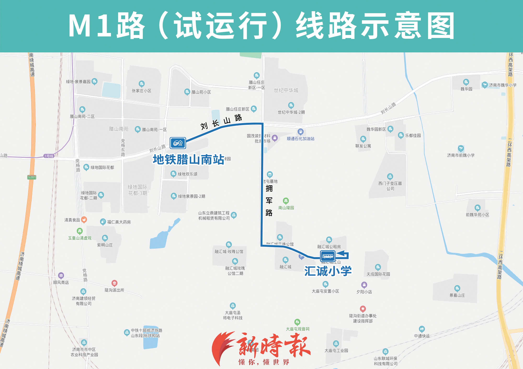 地铁接驳专线M1路,途经刘长山路、腊山北路、融汇城南侧道路,方便融汇城、世纪中华城、任庄新区等小区居民接驳换乘。