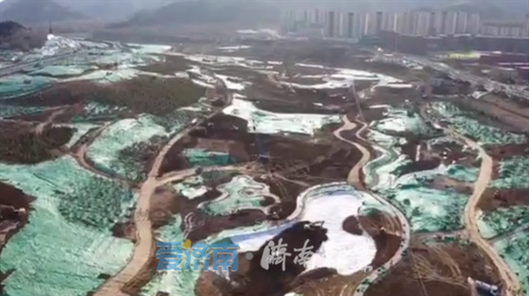 12月13日,位于济南市市中区的城市综合公园——兴隆公园正在建设当中。从高空俯瞰,整个在建区域东至兴隆水库,西至小岭路,南至兴济河,北至兴隆路。大型机械设备正进行土方开挖施工以及地形塑造施工。