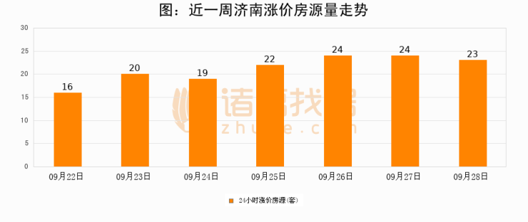 根据诸葛找房数据显示,济南24小时涨价房源量为23套,较09月27日减少1套,环比下降4.2%。与此同时,涨价房源占比小幅回落,对于购房者来说是一个入市窗口期,购房者可抓住时机入市。