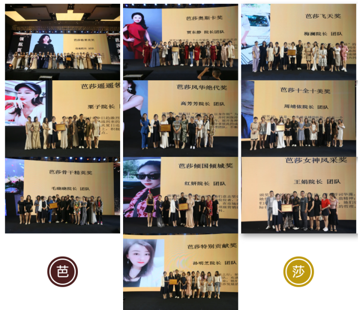 最后何家劲老师与关玲女士(芭莎美恩集团品牌创始人)为各芭莎优秀团队授牌合影.