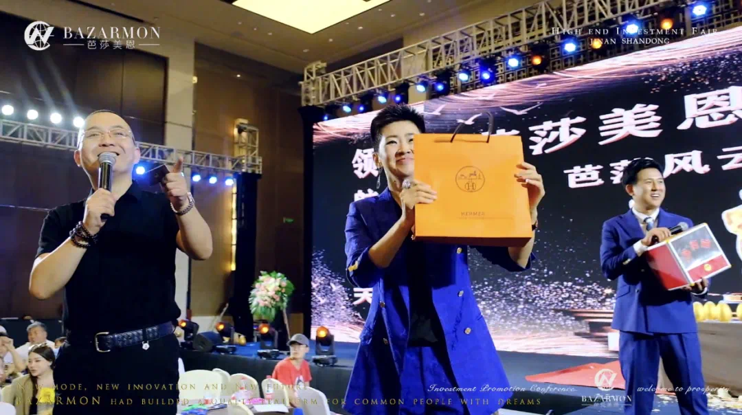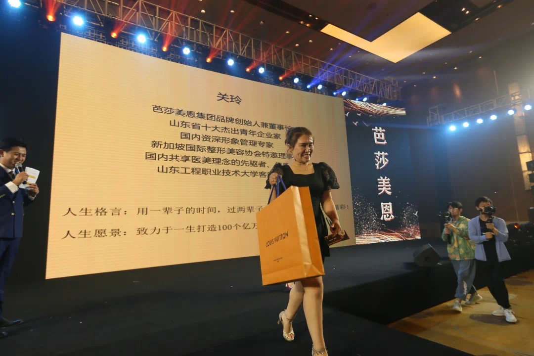 芭莎美恩集团品牌创始人·关玲女士为了感恩到会的所有嘉宾,现场所有嘉宾免费抽奖,准备了爱马仕、LV、古驰以及50台手术作为本次会议的感恩奖品。关玲女士一上台便为大家抽取了排名前列位幸运嘉宾,奖品:LV包。