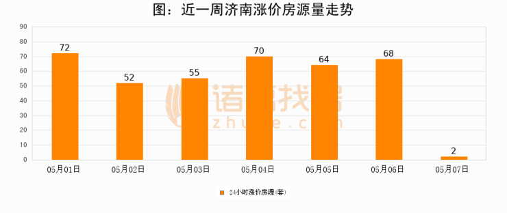 根据诸葛找房数据显示,济南24小时涨价房源量为2套,较05月06日减少66套,环比下降97.1%。与此同时,涨价房源占比小幅回落,对于购房者来说是一个入市窗口期,购房者可抓住时机入市。