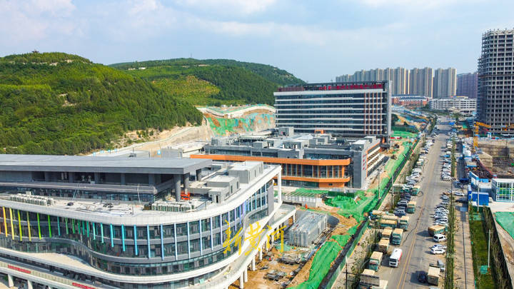 东院区项目规划总占地面积约217.33亩,设置床位1497张,正在施工的三座建筑正是东院区建设的一期项目,总建筑面积约12万平方米,包括国际医疗中心、急诊急救中心、1号病房楼、连廊等。其中国际医疗中心地上6层,地下2层,包含国际保健、健康查体、中医诊疗、内镜中心等功能。