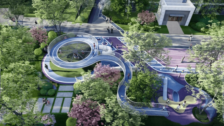 同时,滨河府将景观与休闲健身、儿童娱乐结合,打造富含生态、趣味、交流的互动园林,如羽毛球场、宠物乐园、活力塑胶跑道、老人健身场地、儿童乐园等互动场地,无论是大人的锻炼时光、孩子的自然小课堂、老人的树下太极与棋牌,还是宠物的撒欢时刻,都将成为日常里舒心惬意的风景,宅家也能享受乐趣生活。