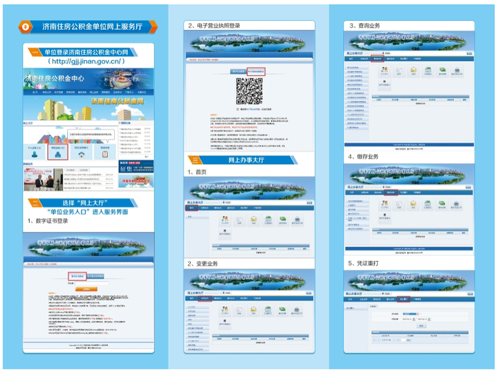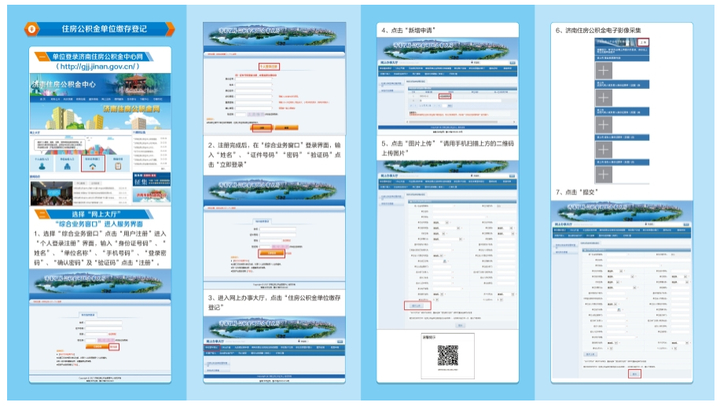 (三)济南住房公积金中心官网网上大厅“综合业务窗口”可办理缴存登记、缴存比例调整、UKEY开通、单位无违规证明申请等业务。附:单位住房公积金缴存登记业务办理图示