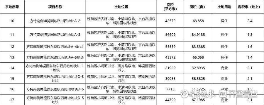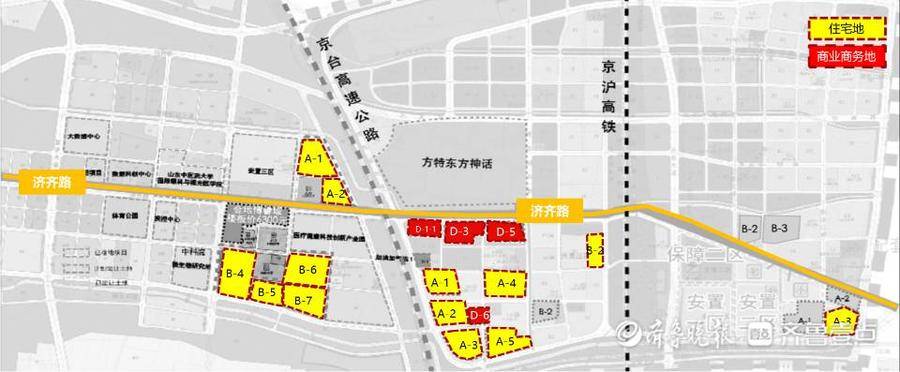 医学中心片区本次集中供地数量为17宗地,集中在济齐路沿线。17宗地共1036亩地,其中居住用地13宗、865.5亩,商业用地4宗、约170.5亩。
