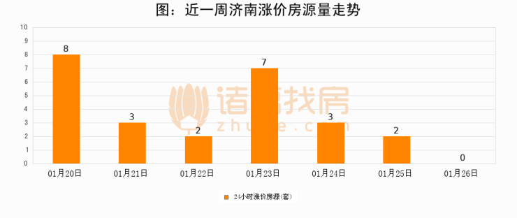 根据诸葛找房数据显示,济南24小时涨价房源量为0套,较01月25日减少2套,环比下降100%。与此同时,涨价房源占比小幅回落,对于购房者来说是一个入市窗口期,购房者可抓住时机入市。