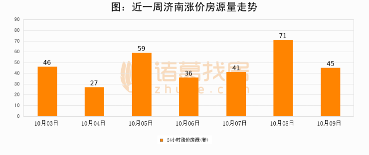 根据诸葛找房数据显示,济南24小时涨价房源量为45套,较10月08日减少26套,环比下降36.6%。与此同时,涨价房源占比小幅回落,对于购房者来说是一个入市窗口期,购房者可抓住时机入市。