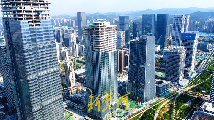 在济南中央商务区,经过近6年的施工建设,迎来了建设收获季,众多建筑不再是裸露钢筋水泥的建筑框架,大部分已经安装了玻璃幕墙,倒映着天空蓝色。