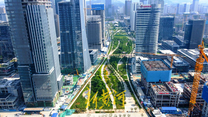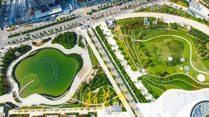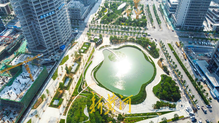 核心内柳叶亭、庆典广场、荷花湖等景观带内的各色花卉竞相绽放,苗木长出翠绿的枝叶,从高空俯瞰,高楼林立的CBD“水泥森林”里,翠绿的景观带向南和向西延伸,组成了大面积的开放式绿地空间,成为中央商务区核心片区的“城市客厅”。