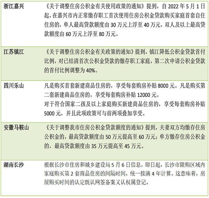 此外,5月5日,江苏省镇江市住房公积金管理中心发布《关于调整住房公积金有关政策的通知》,镇江降低公积金贷款首付比例,对已结清首次公积金贷款的缴存职工家庭,第二次申请公积金贷款的首付比例从60%调整为40%。