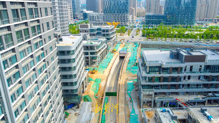 在天辰路与齐风路交叉口南侧,连接地下环路的匝道已经建成,匝道出入口以南的道路已经打通,待出入口两侧建筑施工结束后,铺设最后一层沥青路面,将达到通车标准。