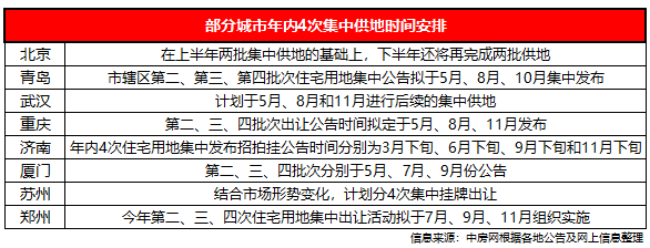 将3次集中供地增加为4次,对各地方政府而言,供地变得更加灵活,能够更加及时的根据市场行情变化调整土地出让的节奏,但这一定程度上也分散了各批次供地面积。