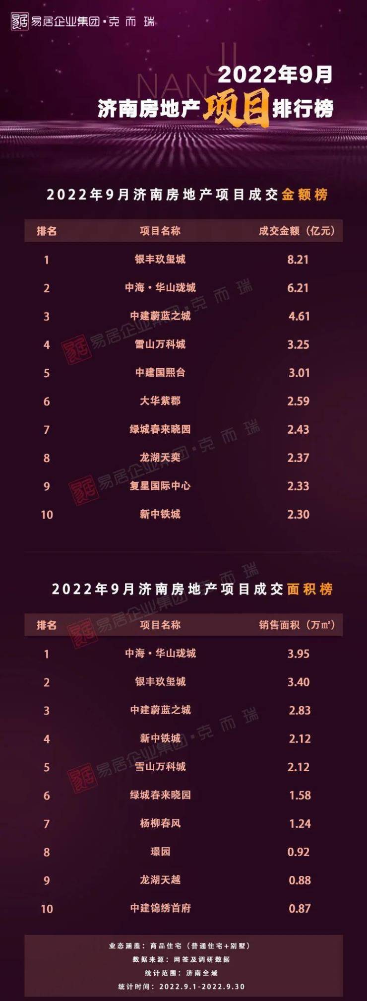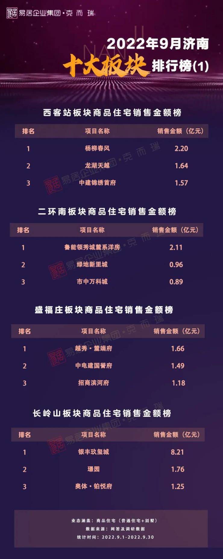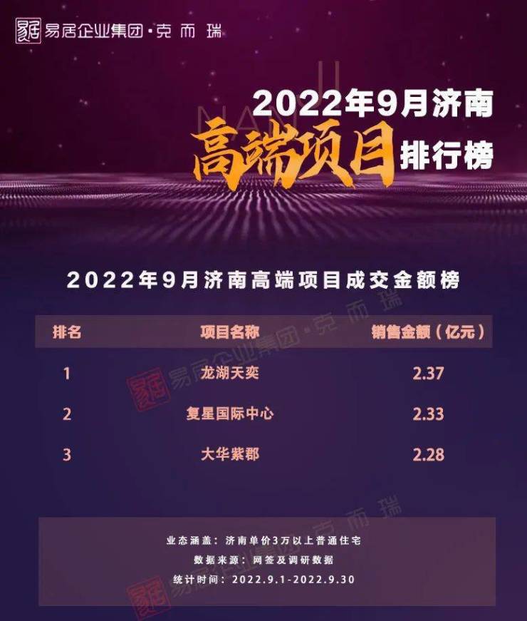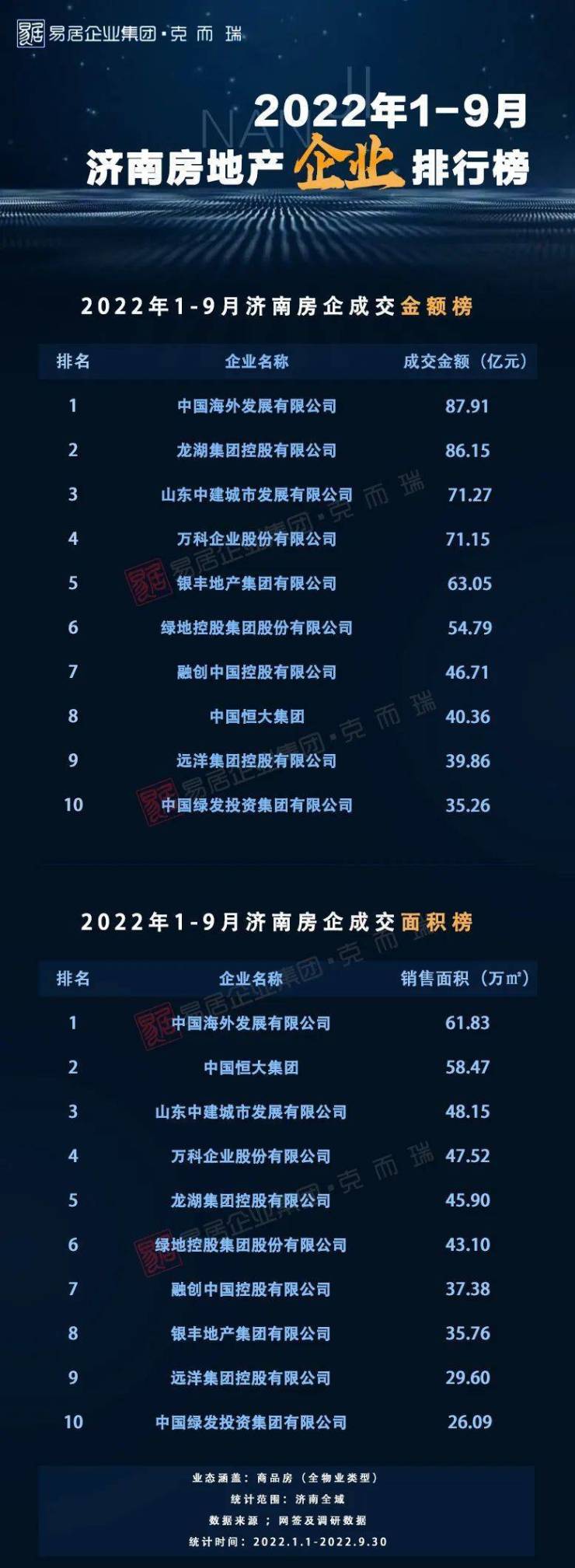 较新排名来了,2022年1-9月济南房地产销售榜发布