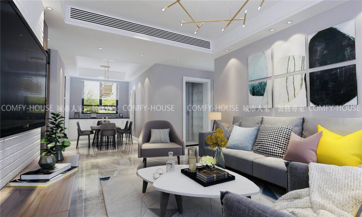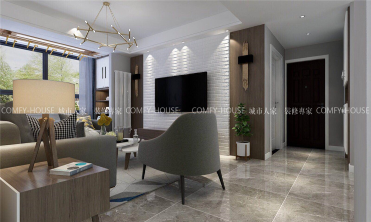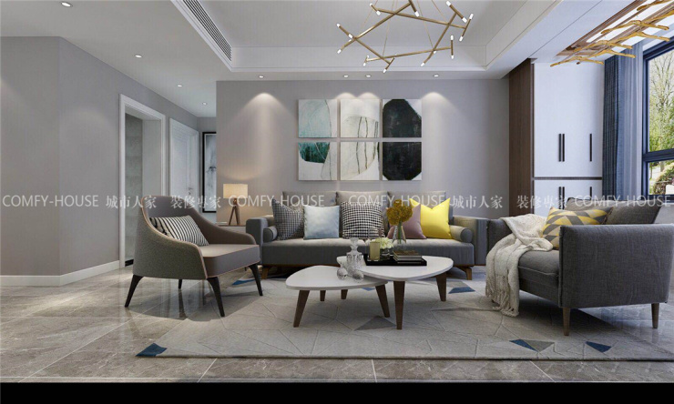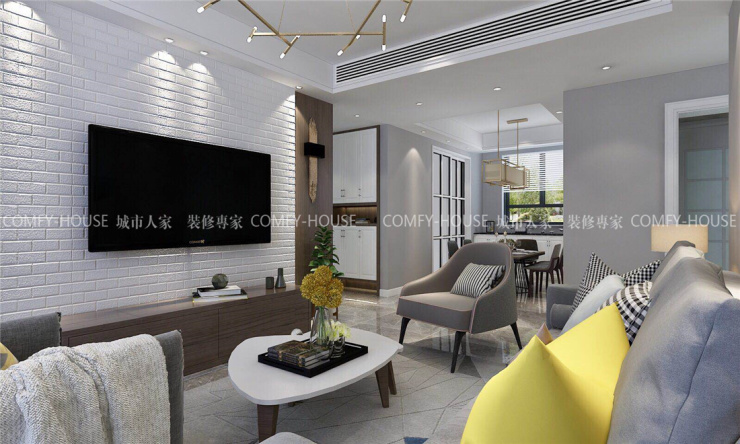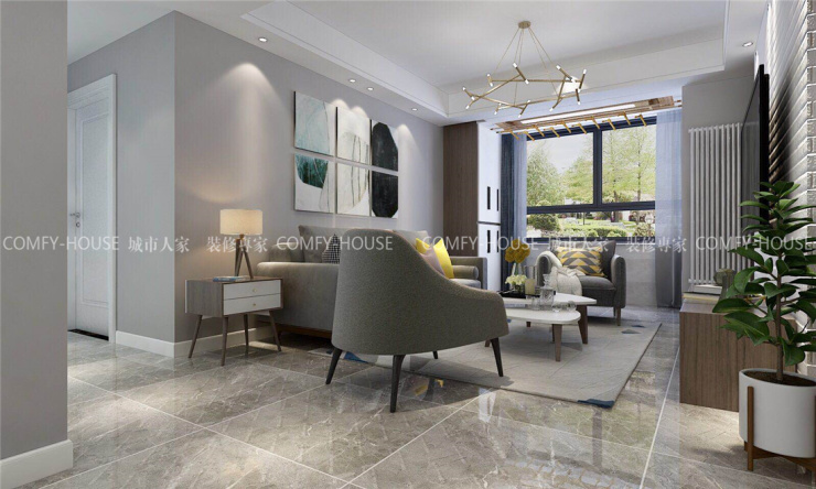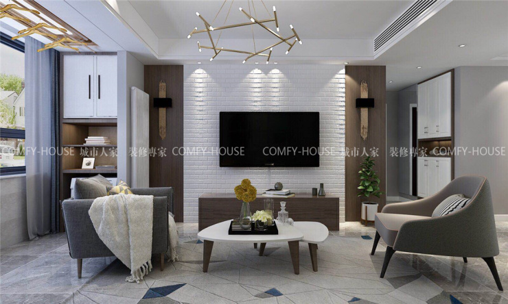 业主需求:客户为年轻人,喜欢柔和的感觉,喜欢现代感那种感觉,定义为简约现代。