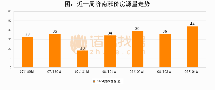 根据诸葛找房数据显示,济南24小时涨价房源量为44套,较08月03日增加8套,环比上涨22.2%。与此同时,涨价房源占比小幅扩大,业主信心有所提升。
