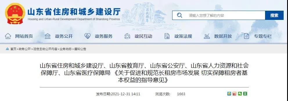 近日,山东省住房和城乡建设厅网站发布《关于促进和规范长租房市场发展切实保障租房者基本权益的指导意见》,保障租房者基本公共权益!赶紧来看↓↓↓