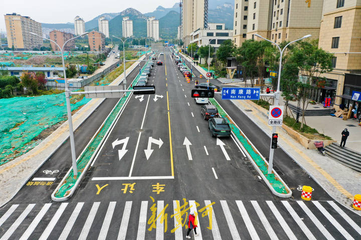 10月7日,在市中区南康路往东路段的宁康街,南北康片区北二路东延道路及管线建设工程顺利通过竣工验收,全面开放通行。