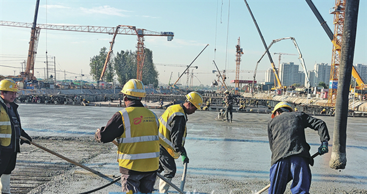 十几台塔吊林立,上百台机械轰鸣,工地上到处都是忙碌的建设者,他们有的在焊接钢筋,有的在浇筑混凝土,如火如荼的建设现场,让人不知不觉间已是激情澎湃……在黄河大道四标段各个工区,济南金曰建设者正各显其能、大干快上。
