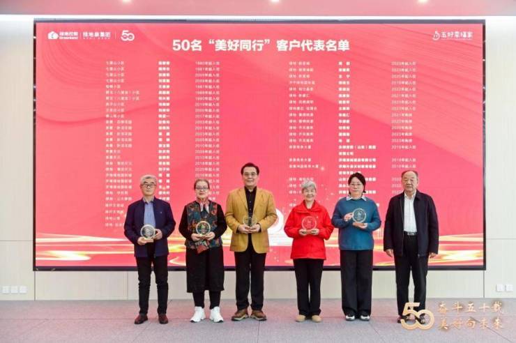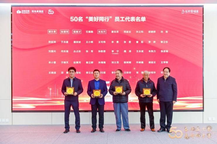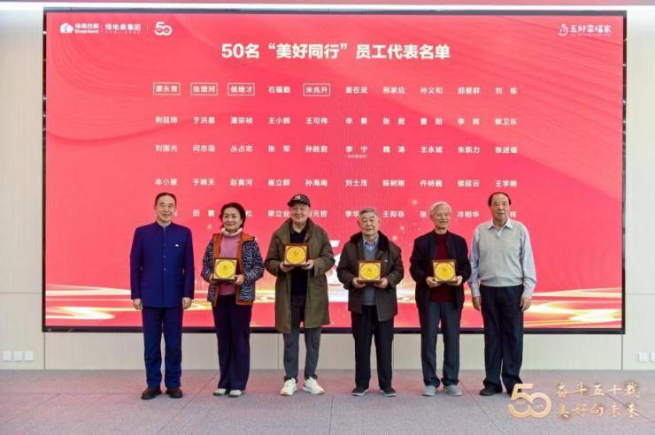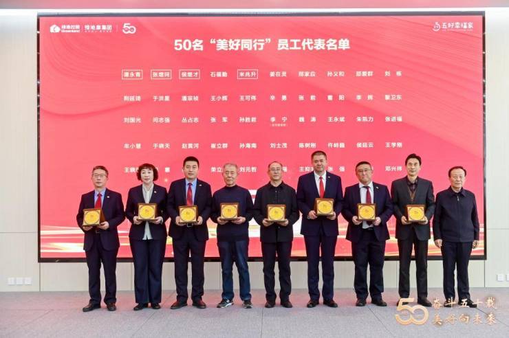 大会还展播了《相伴五十载,美好共前行:绿地泉50年“美好同行”代表访谈录》,并向历时6个月推荐评选出的50位员工代表、50个合作伙伴代表及50名客户代表颁发“美好同行”荣誉证章。三个“50”,三位一体,共同凝聚成绿地泉事业发展的磅礴力量。这一幕,充分彰显了“携手同心”的理念,也为企业的未来发展注入了深厚而坚定的人心根基。