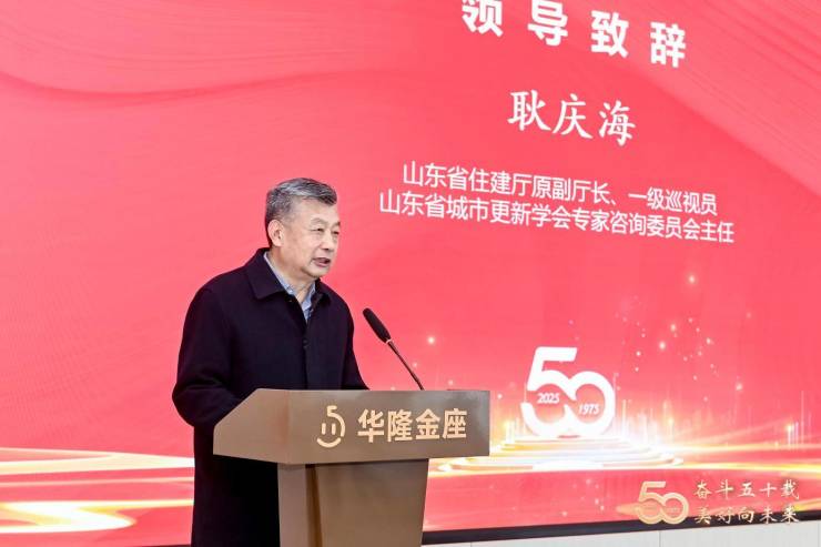 山东省住建厅一级巡视员、山东省城市更新学会专家委员会主任耿庆海开场致辞,对绿地泉集团五十年的辛勤耕耘与卓越贡献给予了高度评价,并深刻诠释了新时代背景下“服务民生”与“创新发展”的深远内涵,为大会明确了前进方向,注入了坚定的信心与强大的动力。