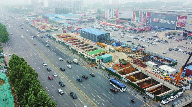 5月12日,在经十路西段的济南地铁4号线腊山站施工现场看到,各项建设已恢复施工,总长约300米的施工区域内,数十名施工人员进行钢筋捆扎施工,多辆大型挖掘机挖掘土方,整个地铁站点的雏形已经显现。(济南时报)