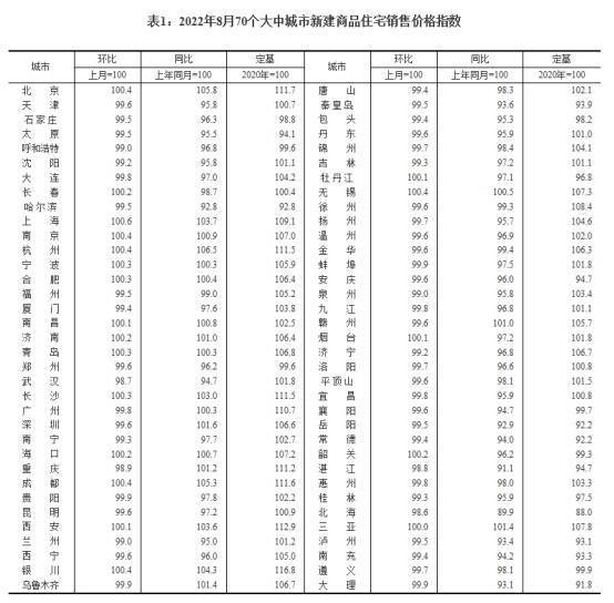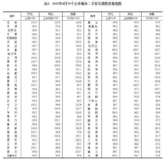 8月份,70个大中城市中,新建商品住宅销售价格同比下降城市有49个,比上月增加1个;二手住宅销售价格同比下降城市有61个,个数与上月相同。