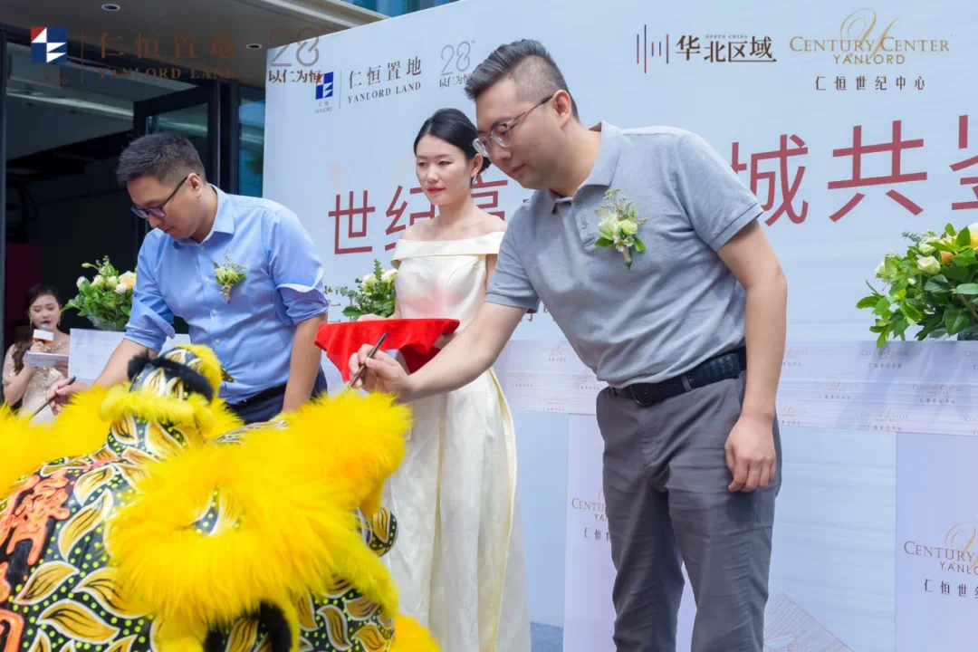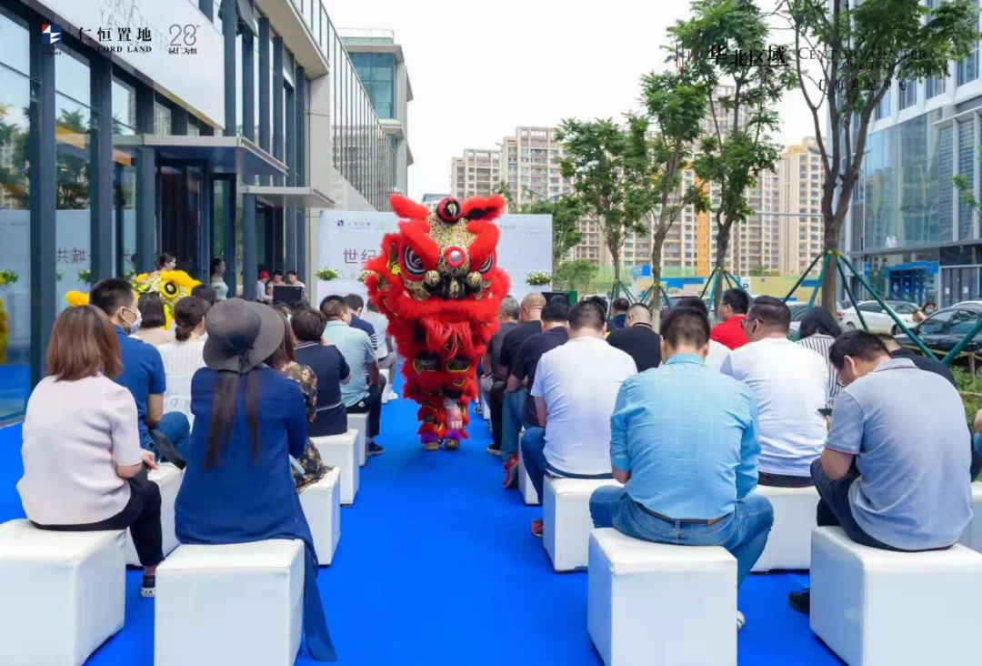 舞狮表演伴随着激昂的乐曲,王继繁先生、徐娟女士、宋莹莹女士、刘祯先生等登台进行剪彩活动,现场响起一阵鼓掌欢呼,将气氛推到高潮,仁恒世纪中心盛境绽放,一城共鉴!