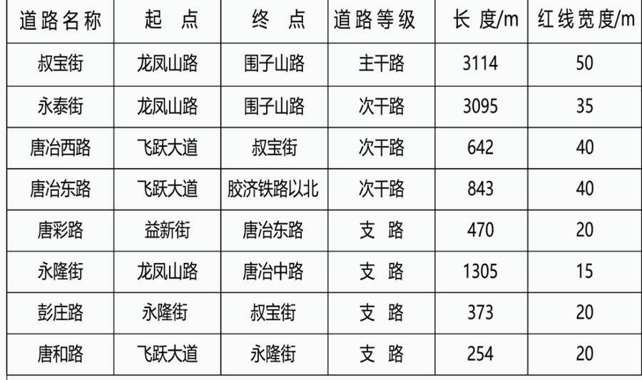 其中,叔宝街为红线50米的主干路,永泰街、唐冶西路、唐冶东路为次干路,其余道路为支路。