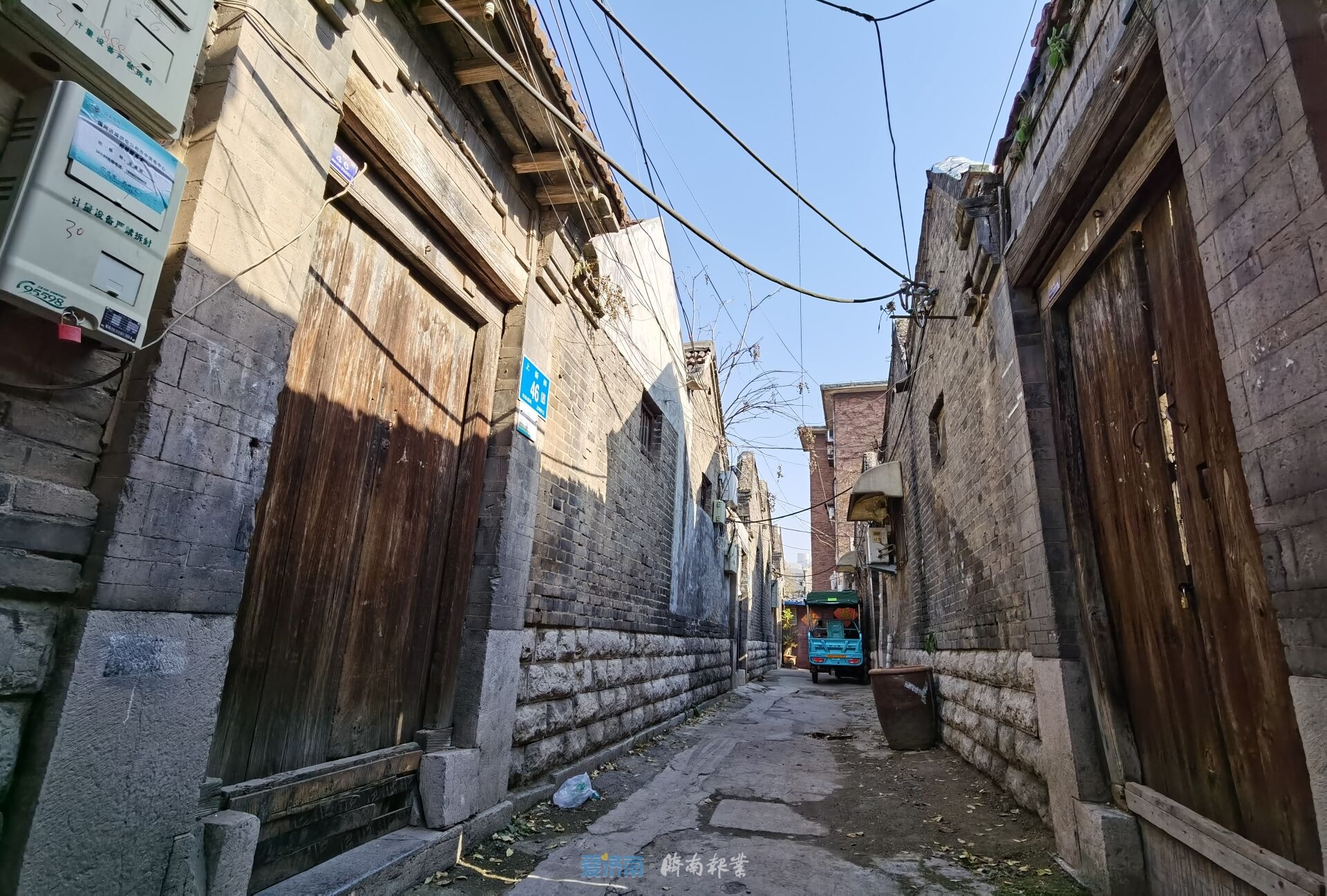 沿着这条不长的街道,由北往南,不时能看到一块块醒目的牌子,这块牌子有济南市人民政府于设立,上写“济南市历史建筑普查建筑”。其中上新街的42号,就挂着一块这样的牌子,“上新街42号传统民居,建于民国,硬山屋顶,砖木结构,系北方传统民居建筑。”