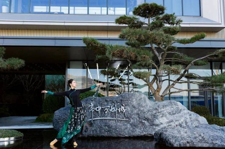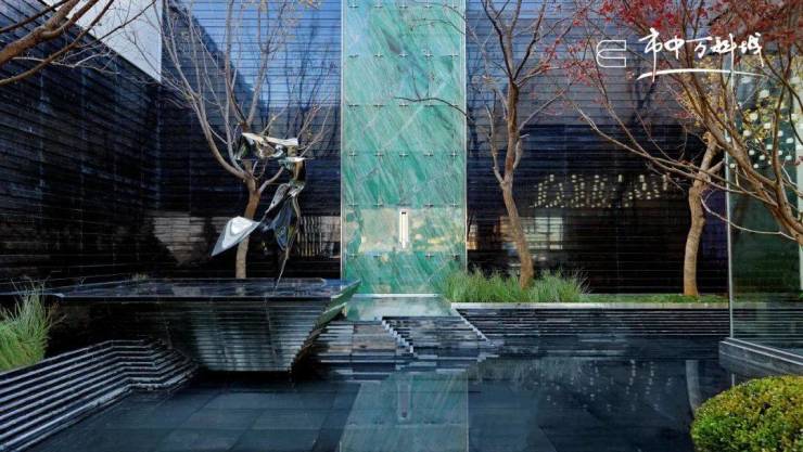 市中万科城三期非常注重建筑材质与植被的色彩搭配,充分还原《千里江山图》中的色彩美学与建筑美学。