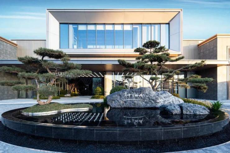 一进云归松壑。在超40米场的门庭前,栽植形态各异、寓意有别的松树,营造出归家的仪式感;二进“方寸壶天”。采用古典园林造景中的“壶中天地”理念,打造出“四水归堂”的形制,增强动线意境;三进“曲池鸣翠”采用宋代宫廷园林的诗意表达,营造出“缘溪行,赏叠翠”的诗意画面;四进“虚怀草坪”则以开阔的视野,提供给业主已出冥想的天地,赋予一种“虽坐拥珍物,仍虚怀若谷”的豁达心境。
