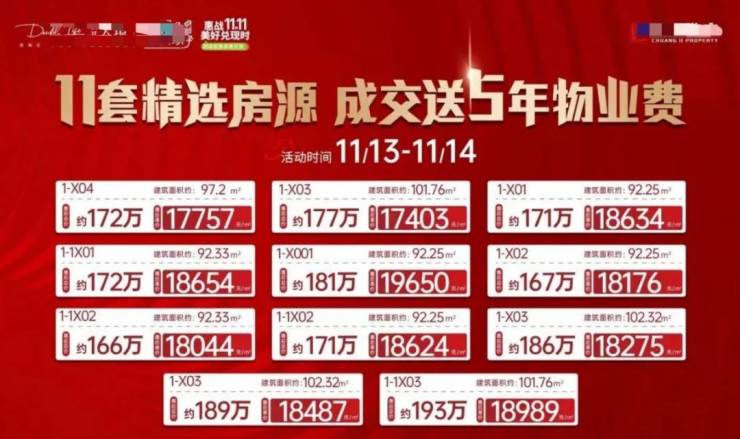记者注意到,这并非创基天璟项目排名前列次推出特惠房源。去年“双十一”,创基天璟就推出了11套特惠房源,定价1.77万-1.89万元/平方米,这个价格就已经比项目当时的拿地价格低了6000元/平方米左右。